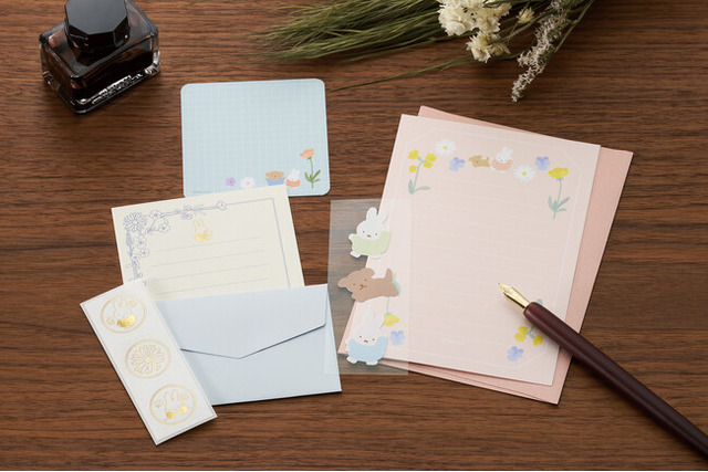 価格:550円(税込)/種類:4種(ガーデンピンク・ガーデンブルー・クラシカルピンク・クラシカルブルー)/製品寸法:[便箋]W97×H140mm、[封筒]W148×H105mm/内容:便箋6枚、封筒3枚、シール3枚/製品紹介ページ:https://paper.maruai.co.jp/shop/c/c07019975/