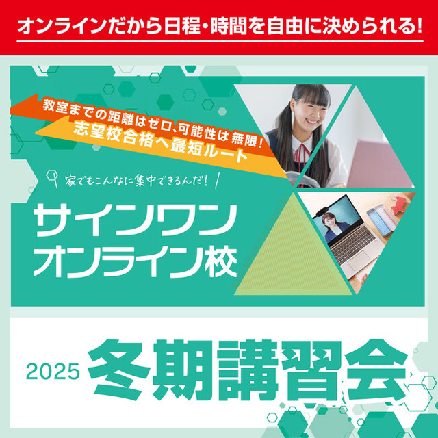 株式会社 学研ホールディングス(東京・品川/代表取締役社長:宮原博昭)のグループ会社、株式会社 学研スタディエ(埼玉・さいたま市/代表取締役社長:亀谷眞宏)の展開する、進学塾サインワンオンライン校は、2025年12月22日(月)より、冬期講習会を開催いたします。