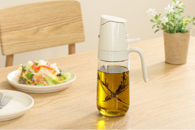 2wayオイルディスペンサープッシュで均一に吹きかけ、フタを外せばたっぷり注げる2WAY仕様。片手で操作できるため、調理中でも手を止めずスムーズに使えます。