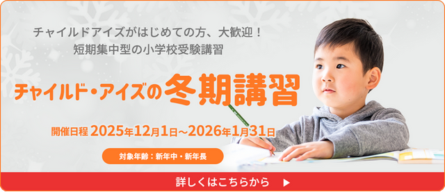 やる気スイッチグループのチャイルド・アイズ(R)の小学校受験対策冬期講習12月から実施中。小学校受験は「冬休みの過ごし方」で差がつく!