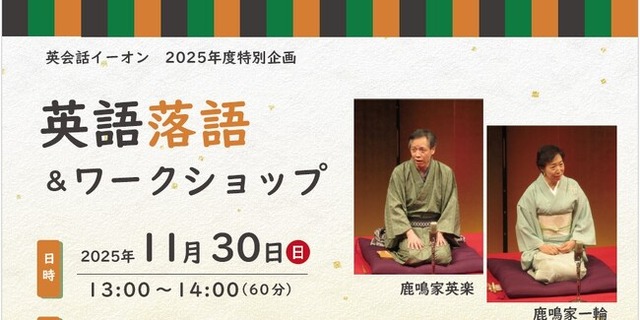 英会話教室を運営する株式会社イーオン(本社:東京都新宿区、代表取締役社長:重野卓、以下「イーオン」)は、2025年11月30日(日)に一般社団法人英語落語協会の鹿鳴家英楽さん、鹿鳴家一輪さんをお迎えし、生徒様参加型イベントとして「英語落語&ワークショップ」を開催しました。