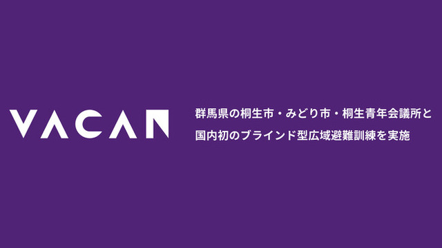 AI技術で混雑を可視化し、「人と空間を、テクノロジーで優しくつなぐ。」をミッションに、施設・エリアを支えるプラットフォームを活用したサービスを提供する株式会社バカン(本社:東京都中央区、代表取締役:河野剛進、以下「バカン」)は、2025年9月13日(土)に、群馬県の桐生市・みどり市・一般社団法人桐生青年会議所が共同開催した広域避難訓練「ワクワク CAMPING ADVENTURE -災害を生き抜く避難所体験キャンプ-」において、避難所開設情報配信サービス「VACAN Maps」と「避難者マネジメントシステム」を提供し、訓練の実施を支援いたしました。