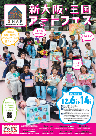 今回で2回目の開催となる『新大阪・三国アートフェス(SMAF)』は、新大阪・三国エリアの30以上の店舗・施設に、約50名以上のアーティスト作品が展示されるアートイベントです。西淀川区、淀川区、東淀川区で実施される「さんよど大文化祭」の一環として開催され、アート・映画・音楽を横断したカルチェーフェスとして各地で展開されます。
