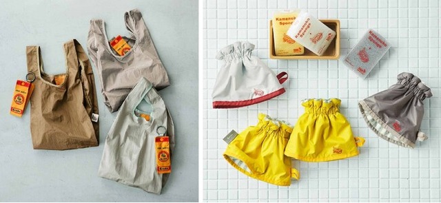 「誰かのために」という思いを大切にしながら、現代の生活に合うデザインで商品ラインナップを展開。亀の子束子のパッケージを再現したポーチが付いたエコバッグ、「亀の子スポンジ」とおそろいの水ぬれ防止のアームカバー、ふだん使いしやすいタートルネックトップス、ミニ束子と亀チャーム付きの気軽にものを持ち運べるショルダーマイポッケなど、家族やママをさりげなく助けるアイテムをそろえました。
