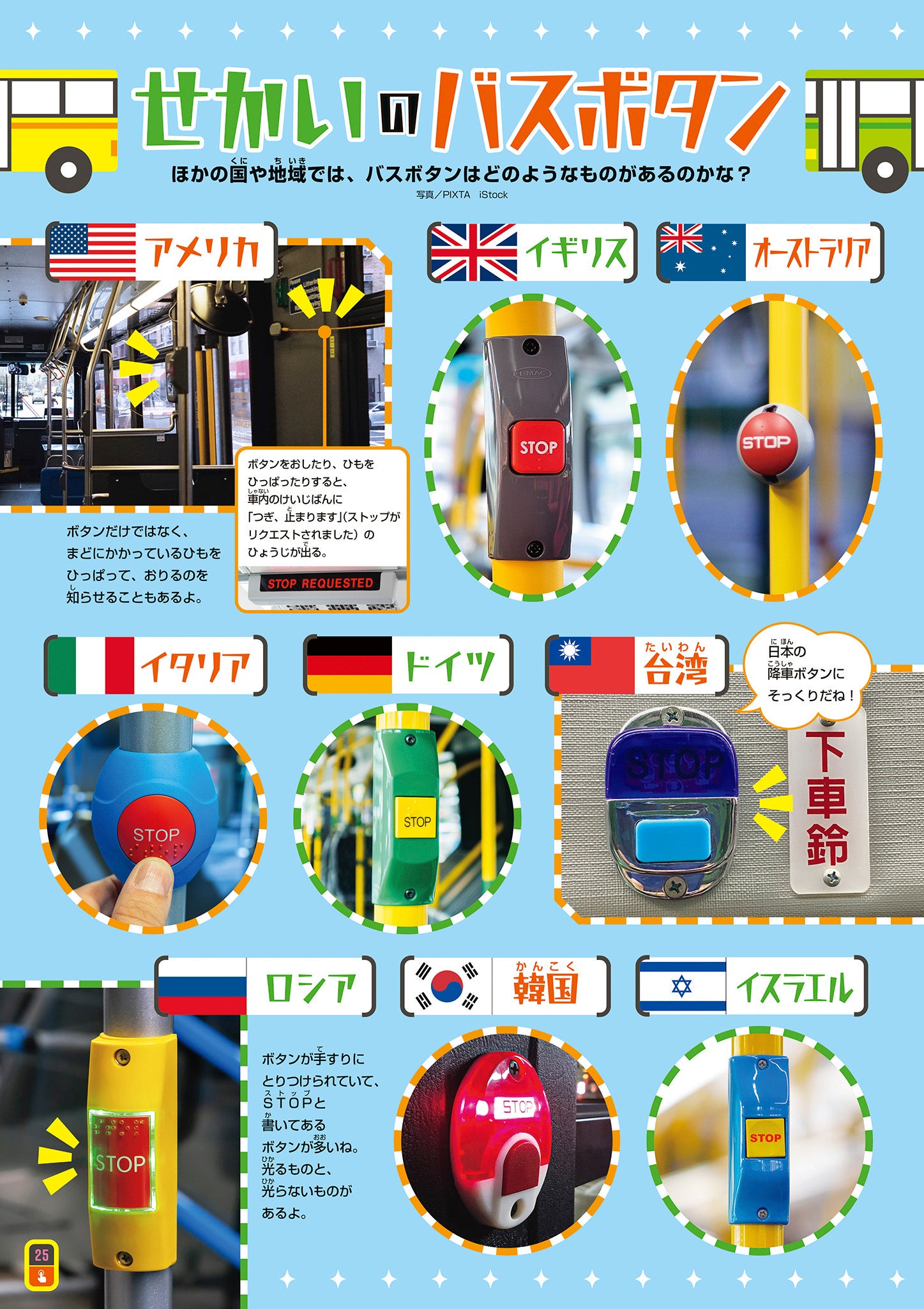 ムック本には、「バスボタンのしくみ」「運転士さんのお仕事」「車内の設備」「世界のバスボタン」など、普段は見られないバスにまつわる情報が満載です 。