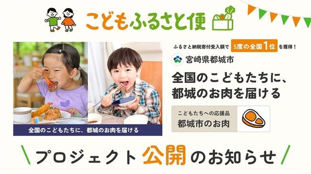 このたび、ふるさと納税寄附受入額において、全国で唯一11年連続トップ10入りし、令和4年度・令和5年度の2年連続を含めこれまで5度の全国1位となった、ふるさと納税で高い実績のある『宮崎県都城市』と「こどもふるさと便」ポータルサイト契約を締結し、返礼品の掲載を開始いたしました。人気の返礼品をもつふるさと納税人気上位の自治体が参加し、「こどもふるさと便」参加の間口がひろがることで、支援の輪がさらに広がることが期待されます。