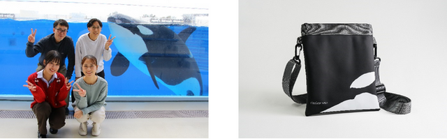 サコッシュはシャチの特徴である白黒の模様を図案化し、神戸須磨シーワールドで飼育しているシャチの「ステラ」のアイパッチがデザインされています。