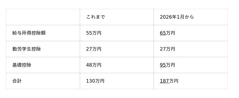 2025年4月に施行された所得税法の一部改正により、いわゆる“年収の壁”が引き上げられ、「給与所得控除額」と「基礎控除額」が変更されました。これに伴い、2026年1月から学生免除を適用する年間収入に関する要件が変更となります。