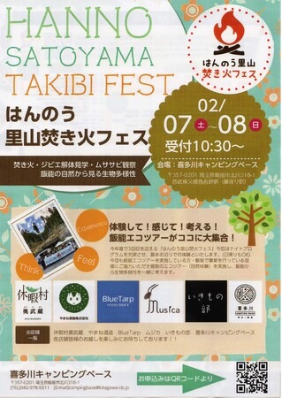 ぶな総合企画株式会社(本社:埼玉県飯能市、代表取締役:森田美明)が運営する「喜多川キャンピングベース」は、2026年2月7日(土)~8日(日)の2日間、第3回「はんのう里山焚き火フェス」を開催いたします。本イベントは「飯能の自然から見る生物多様性」をテーマに、ジビエの解体見学やムササビ観察など、地域の自然と命のつながりを体験するプログラムを提供します。