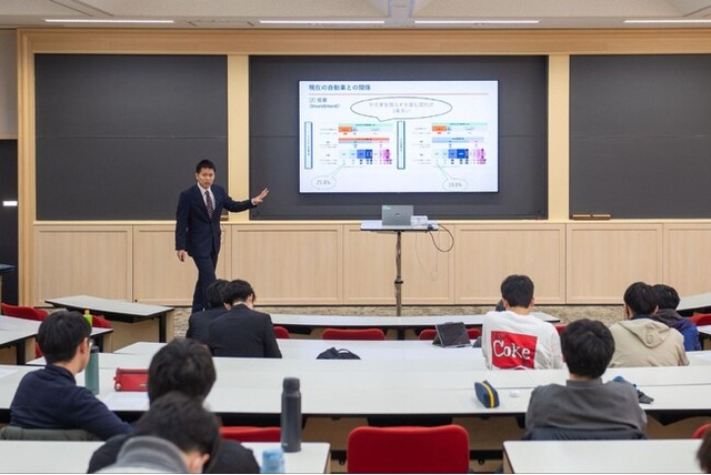 本学では、4年間の学びの集大成として卒業論文を執筆します。卒業論文は学生自身が自由にテーマを選択し、自らの方法で研究を重ね、結論を見出します。2025年度は12月10日(水)に日進キャンパスにおいて、「卒業論文発表会」が開催され、総勢1,143名が参加しました。卒業論文発表会では各セミナーの代表学生が、執筆した卒業論文をスライドなどにまとめ、他学部や下級生にもわかりやすくプレゼンテーションを行います。テーマも時代やニーズに合わせて変化しており、今年度は以下のようなテーマの論文発表が行われました。