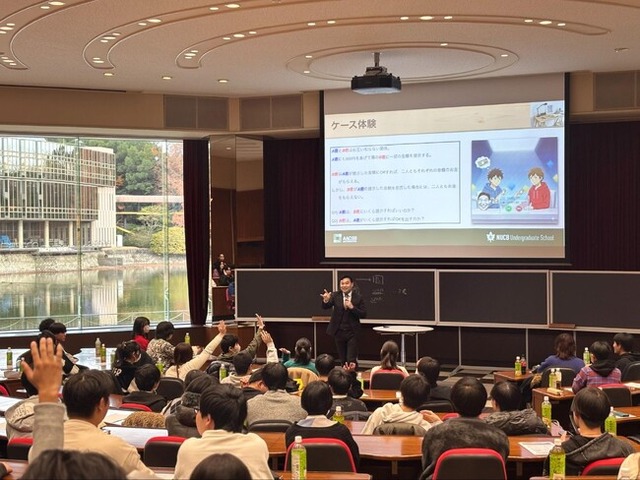 名古屋商科大学 経営学部長の韓尚憲教授より、特徴的な教育スタイルである「ケースメソッド教育」について紹介しました。ケースメソッド教育では、ビジネスの現場で問題となる事例=ケースを扱います。参加者はケースを読んで主人公の立場を追体験し、「自分ならどうするか?」という正解のない問いを考えることで、課題解決能力や危機管理能力を伸ばします。また、参加者同士がケースの問いに対して意見を出し合ってディスカッションすることで、他の学生から多様な意見を学ぶことができます。