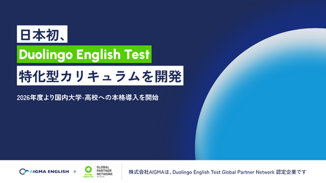 株式会社AIGMA(本社:千葉県松戸市、代表取締役:内田 泰雅、以下「AIGMA」)は、世界で急拡大しているオンライン英語試験「Duolingo English Test(以下 DET)」に特化した受験対策カリキュラムを開発し、2026年度(令和8年度)より、国内の大学および高等学校への正式導入を開始することをお知らせいたします 。