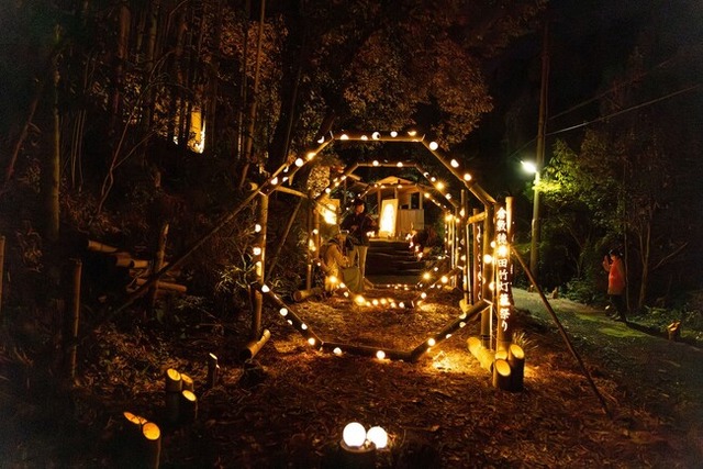 農村の里山を舞台に、約3,000本の竹灯籠が灯り、延べ1,300人が来場しました。