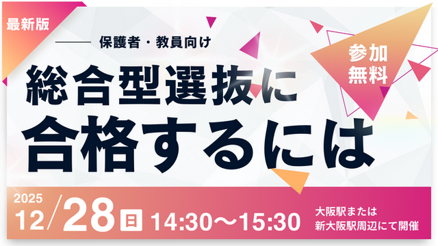 本相談会では、近年ますます重要性が高まっている総合型選抜の最新動向や、合格までのプロセス、保護者・学校ができるサポートの在り方などを専門講師が解説します。