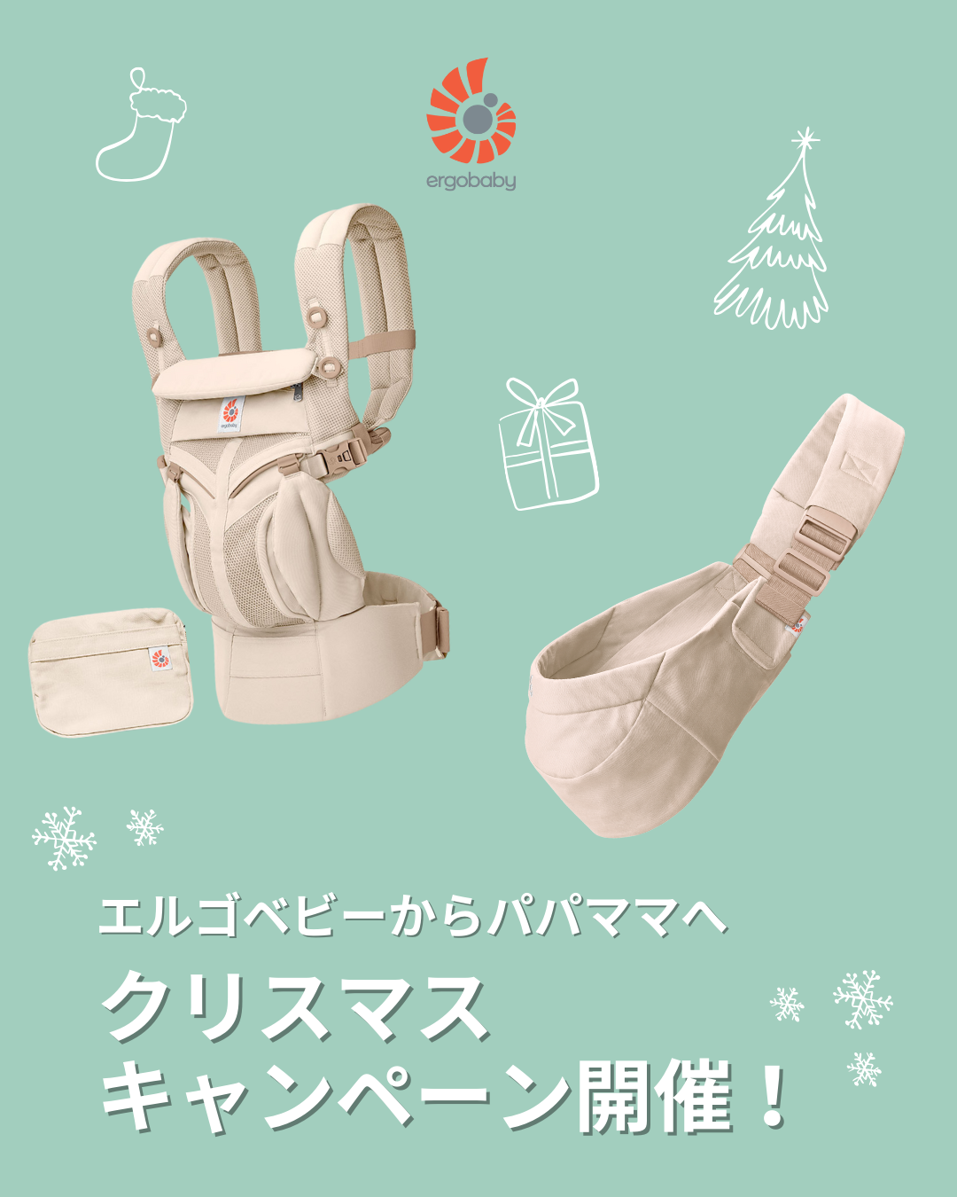 様々なアワードの受賞は、日々製品をご愛用くださる多くのご家族のおかげです。感謝の気持ちを込めて、またパパママへのクリスマスプレゼントとして、Instagramでキャンペーンを実施!2025年11月に登場した最新モデル「OMNI Classic」「Upsie Sling」を最大で計8名さまにプレゼントいたします。エルゴベビーはこれからも、抱っこを通じてお子さまと同じ目線で世界を見たり、やわらかな匂いや肌のぬくもりを感じる特別な時間を過ごしていただけるよう、サポートさせていただきます。