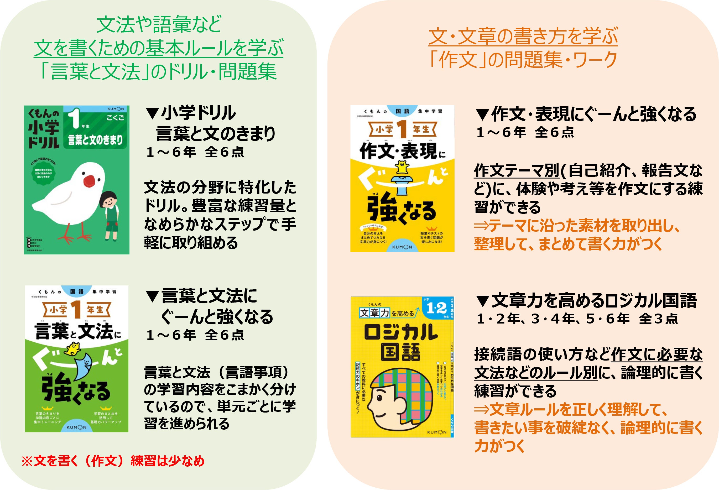 くもん出版が刊行する「言葉と文法」や「作文と表現」の既刊問題集の紹介
