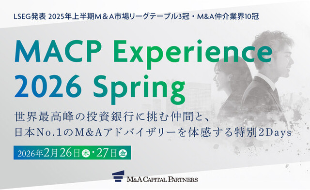 M&Aキャピタルパートナーズ株式会社(本社:東京都中央区、代表取締役社長:中村 悟、以下「MACP」)は、2026年2月に採用イベント「MACP Experience 2026 Spring」を開催いたします。