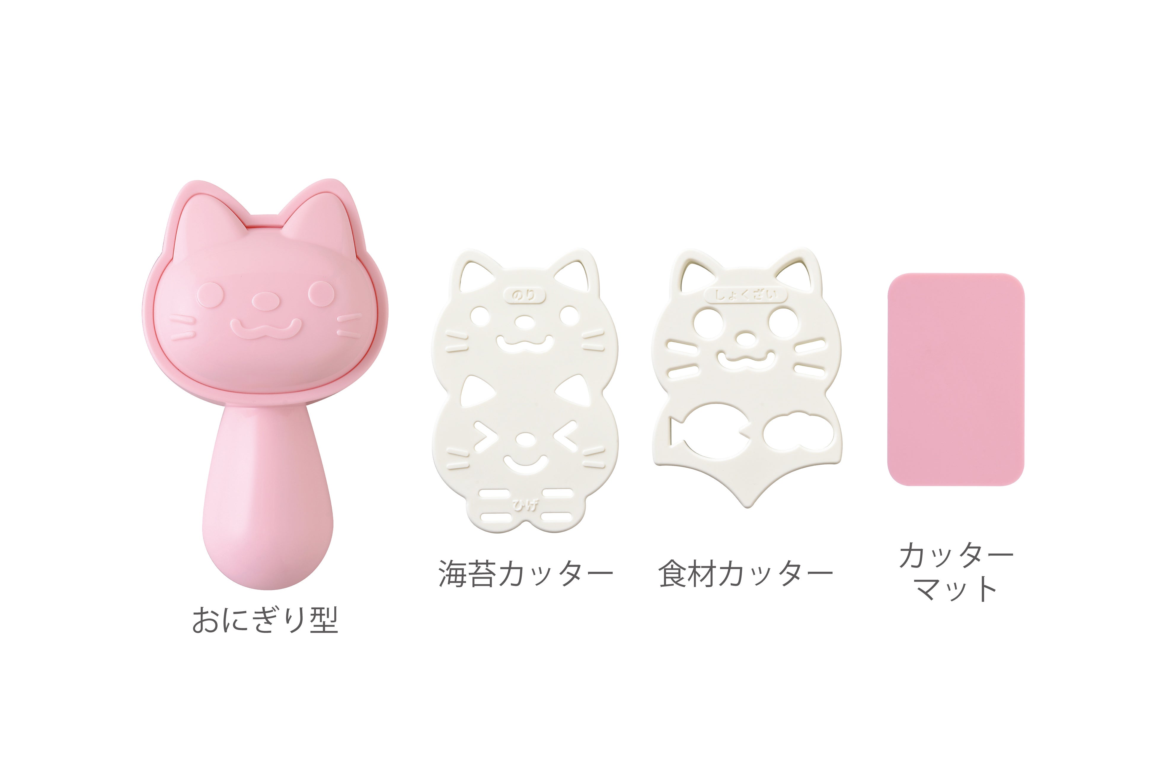 セット内容:おにぎり型…1個、海苔カッター…1個、食材カッター…1個、カッターマット…1枚