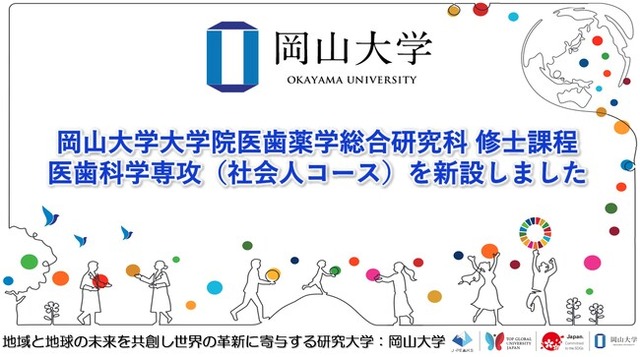 国立大学法人岡山大学(本部:岡山市北区、学長:那須保友)の大学院医歯薬学総合研究科では、医歯科学専攻 修士課程に「社会人コース」を新設しました。