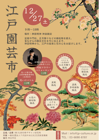一般社団法人千代田中央文化交流推進機構(東京都千代田区外神田2-17-4 代表理事:清水祥彦)は、(株)石原和幸デザイン研究所が主催する「神田明神 江戸園芸市」を令和7年12月27日9時から18時の予定で、神田明神境内にて開催します。
