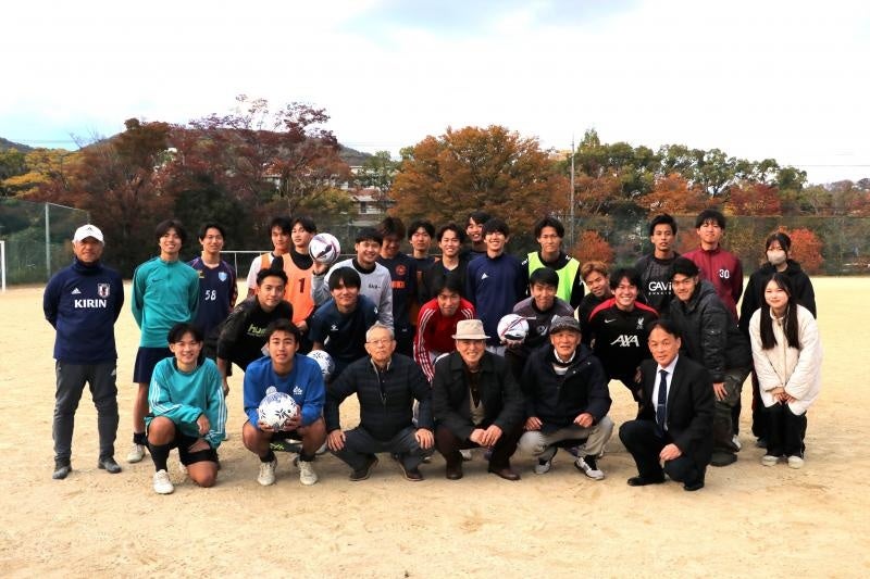 国立大学法人岡山大学(本部:岡山市北区、学長:那須保友)は、2025年11月19日にサッカー部OBの3人が本学を訪れ、サッカー部にサッカーボール5個を寄贈しました。