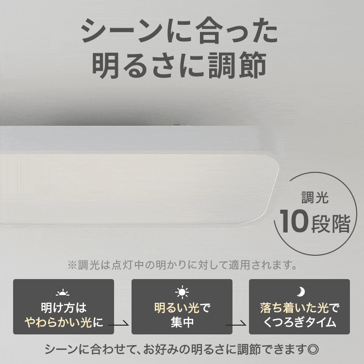 厚さはわずか7.8cmの薄型設計なので、天井との一体感が高まり、部屋を広く感じさせます。また調色11段階、調光10段階なので、シーンに合わせて調整ができます◎お気に入りの明るさ・色を記憶してくれるメモリー機能も搭載。寝落ちしても安心なタイマー機能も嬉しいポイントです◎