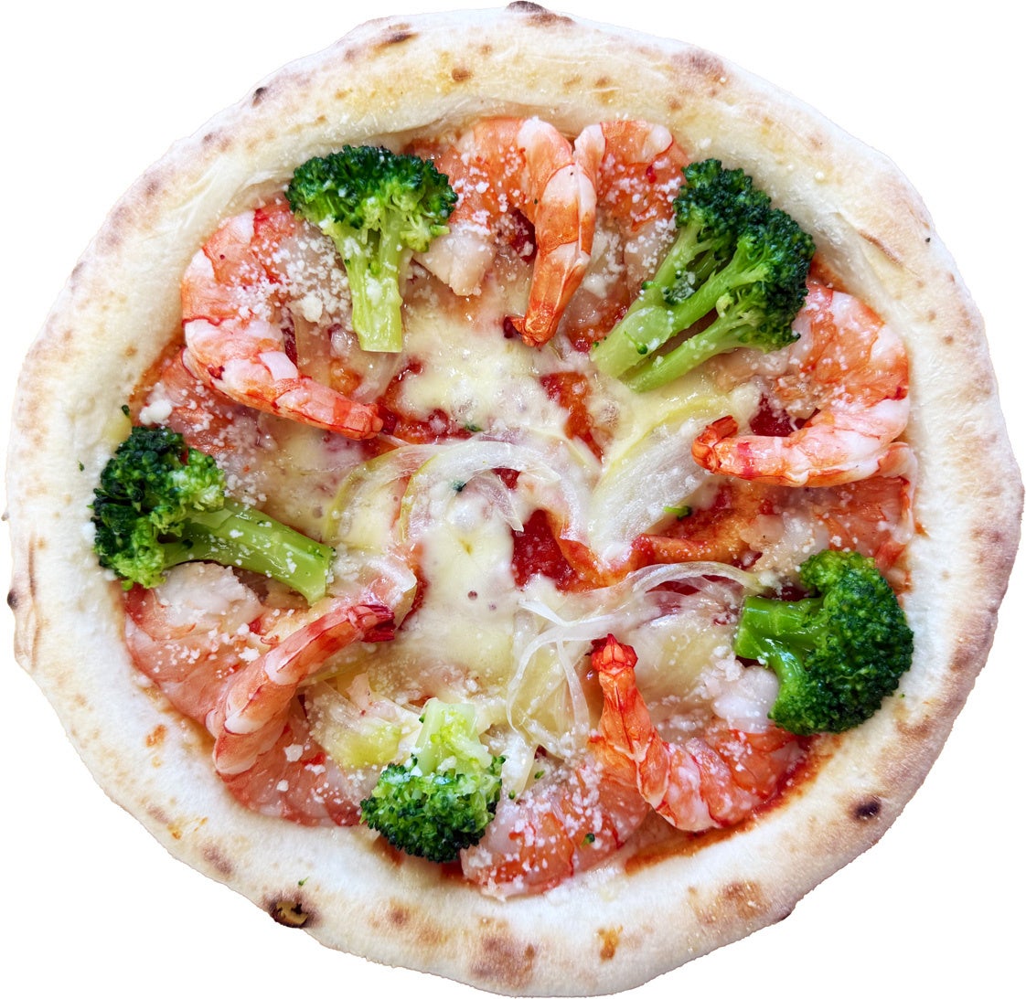ぷりぷり食感が魅力の海老を5尾トッピング。シャキッと茹でたブロッコリーの甘みが、モリナポ特製トマトソースのベースと絶妙にマッチします。彩りも美しく、年末年始の食卓が華やぐ一枚。