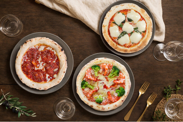 「2025特急便セット」は、モリナポで不動の人気を誇るマルゲリータをグレードアップした「トリプルマルゲリータ」、ぷりぷりの海老が嬉しい「海老とブロッコリー」、ワインやビールに合う「サラミとオレガノ」の3種類で構成。年末の特別なひとときにふさわしいピザを厳選しました。