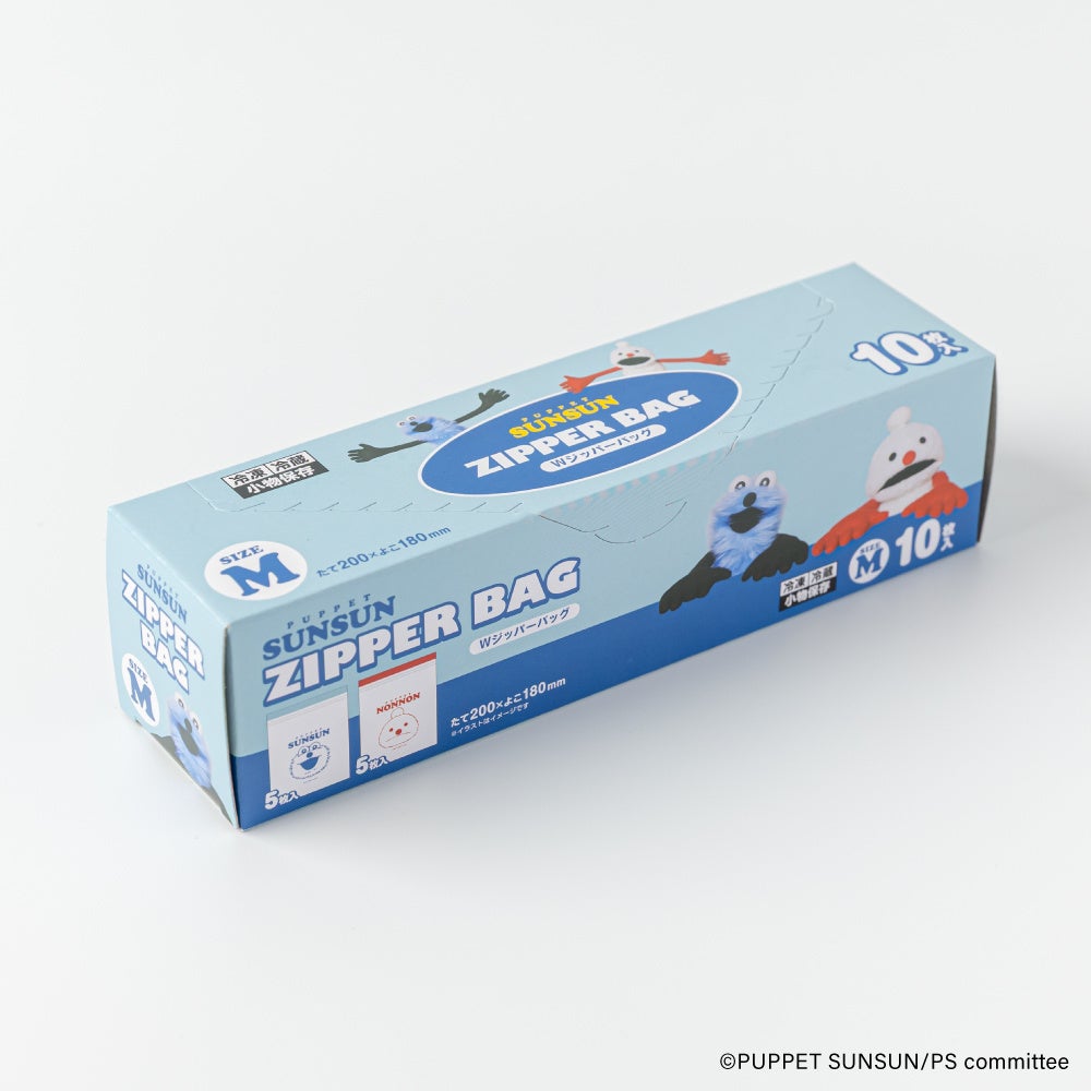 今回、行楽やパーティにピッタリの使い切り食器や、食品も小物も入れられる小分けのジッパーバック、携帯に便利な個包装マスク(スンスンの刻印付き)やウェットティッシュをラインナップ。スンスンに加え、ノンノンやゾンゾンも登場する全9アイテムを展開します。