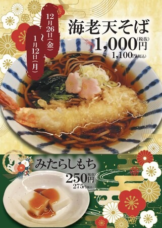 福島県大玉村で山形肉そばを提供する「そば八」(所在地:福島県安達郡大玉村大山中江264-1、PLANT-5大玉店駐車場内)は、2025年12月26日(金)から2026年1月12日(月)までの期間限定で、特別メニュー「海老天そば」を販売いたします。ぜひ、「そば八」の年越しそばで、健やかな新年をお迎えください。