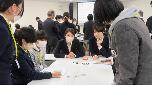 また、ホワイトボード・ミーティング(R)を活用したグループ討議を行い、高校生同士が「理想の教師像」について活発に意見を交わしました。