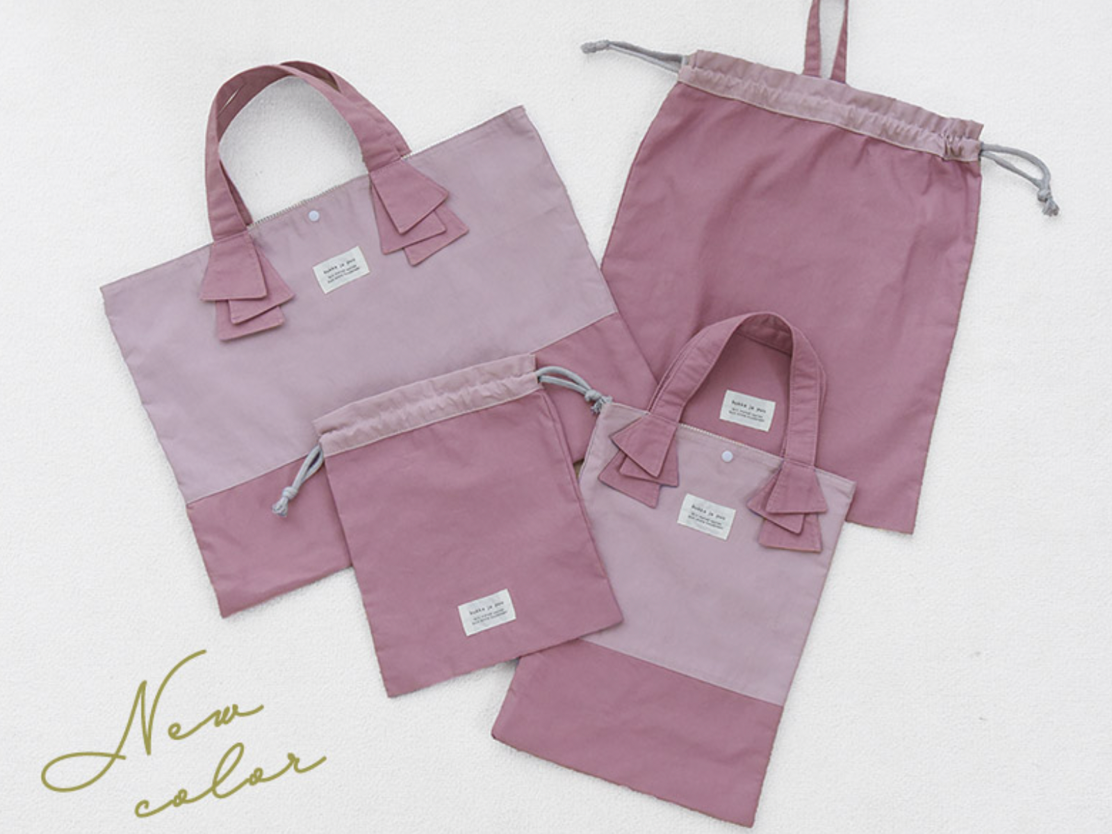 kukka ja puuオリジナルの生地で作った、北欧テキスタイル風入園入学シリーズもバリエーション追加。「リボン/ピンク」が仲間入りして、全6カラー展開になりました。