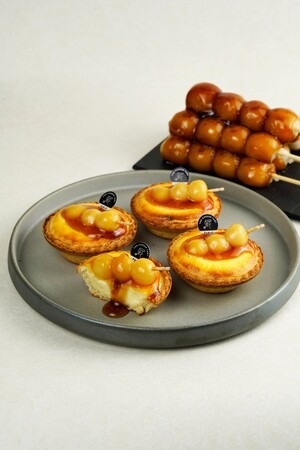 「PABLO mini みたらし団子」PABLO自慢のとろけるチーズタルトの上に、もちもち食感の小さなみたらし団子をトッピングし、香ばしくコクのあるみたらしソースを重ねました。チーズのまろやかさと、みたらしの甘じょっぱい味わいが絶妙なバランスで広がり、ひと口ごとにクセになるおいしさを楽しめます。
