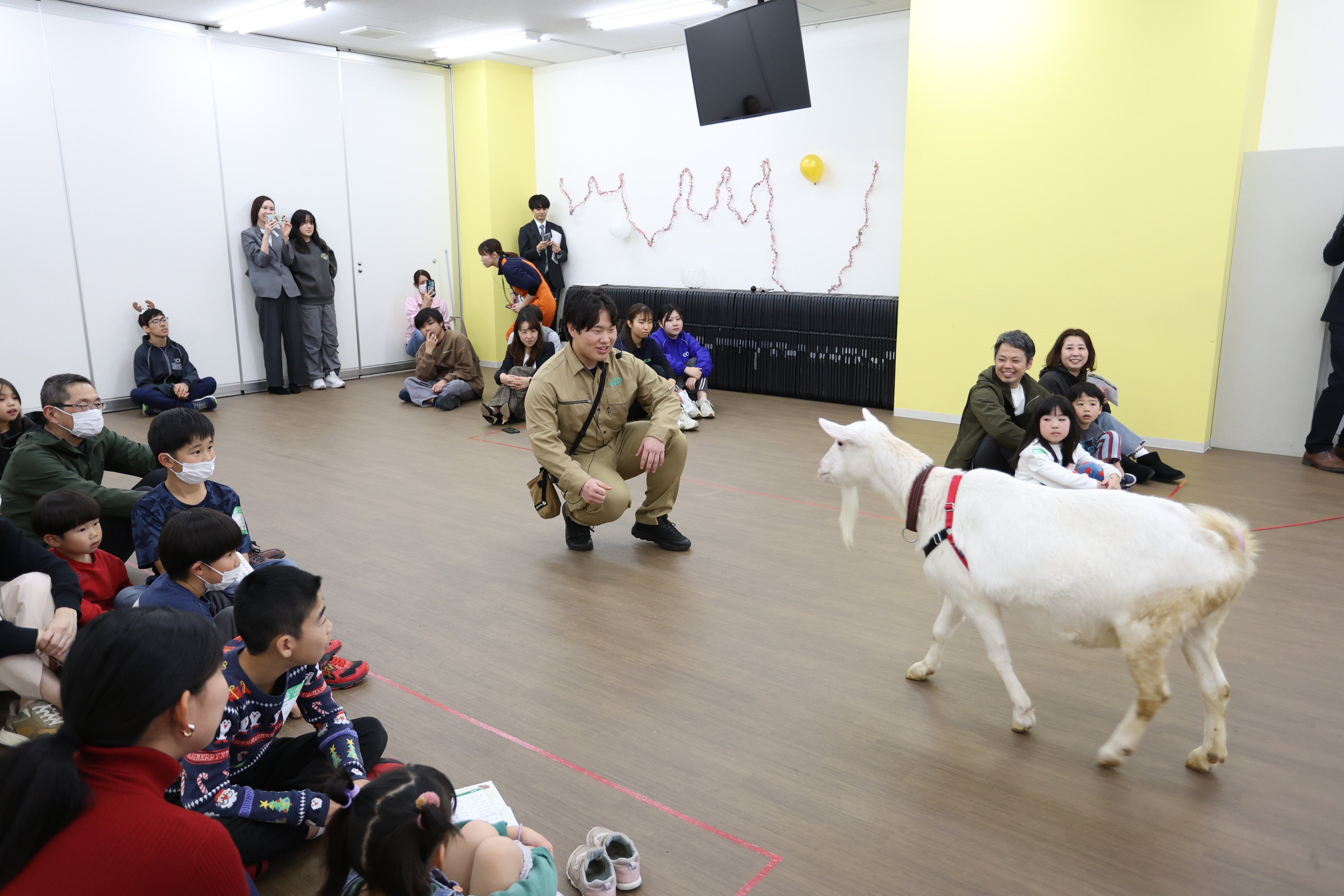 動物とのふれあいを楽しむ会場の様子