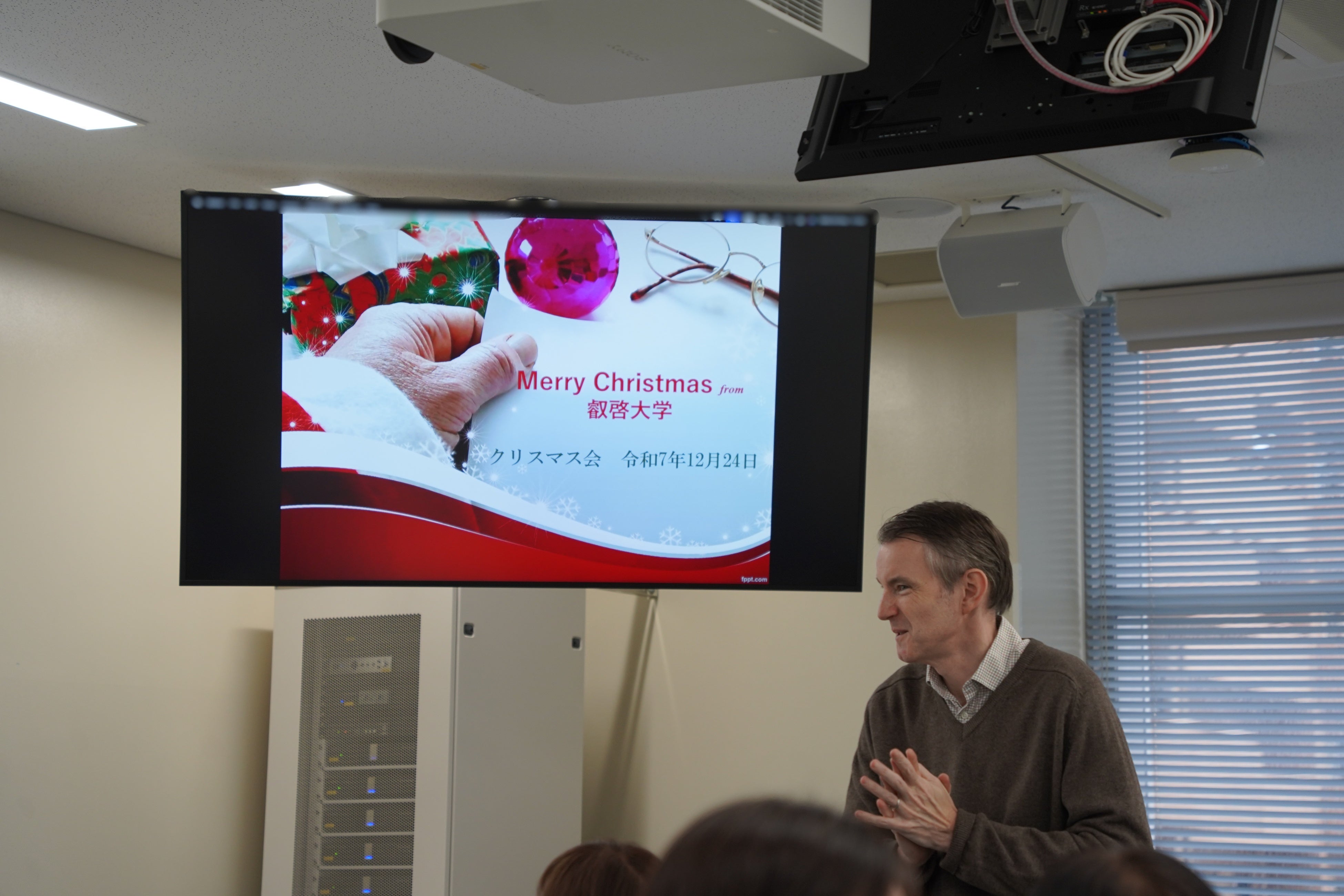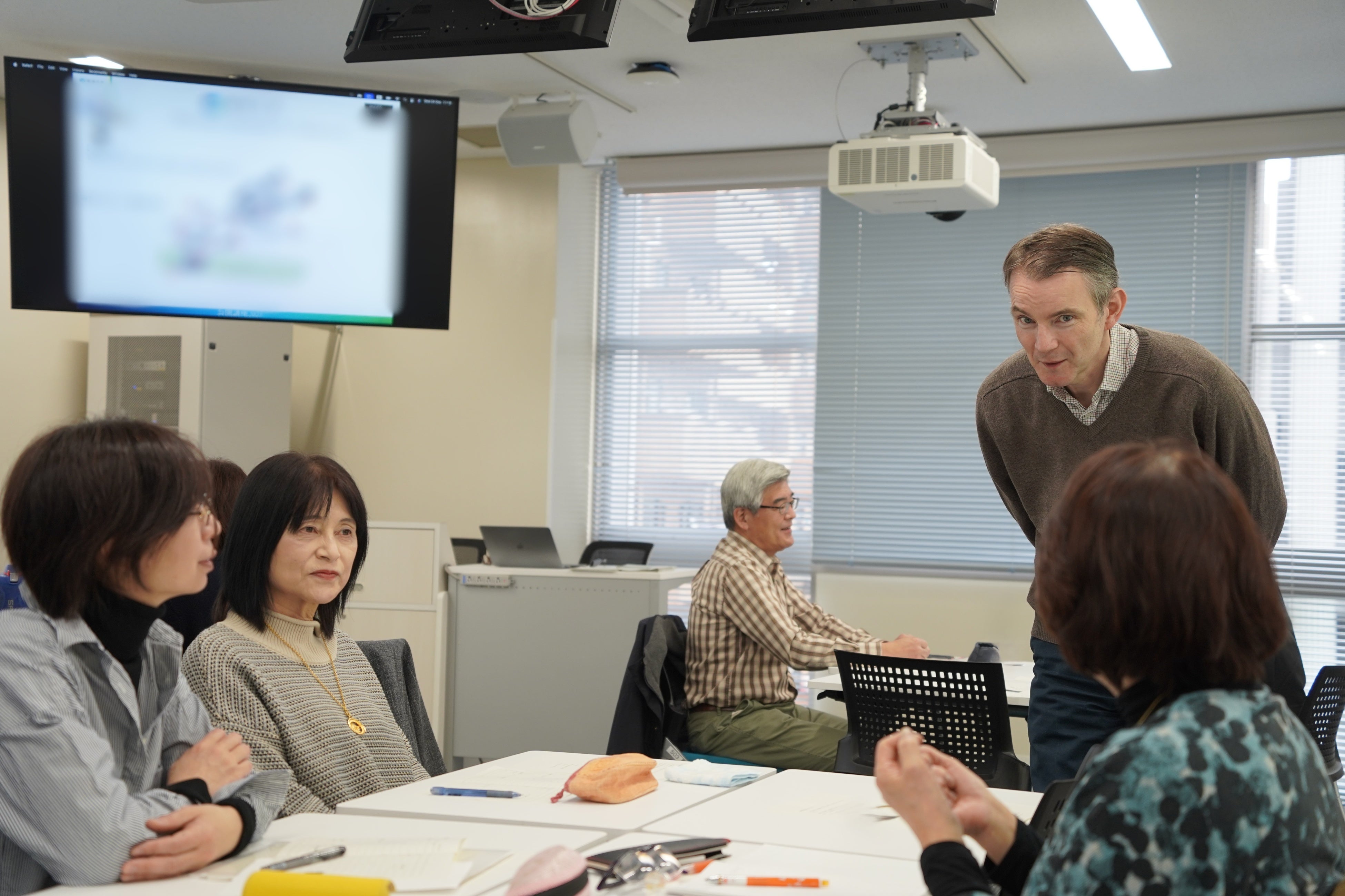 今回の公開講座は12月24日に開講されました。講座の最後は特別に、クリスマスにまつわるクイズが5つ出題されました。この公開講座の開講が今回で4回目ということもあり、受講者の皆さんも互いに打ち解け、積極的に楽しく会話することができているようでした。