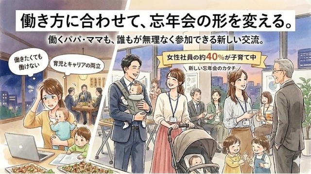 本取り組みは、「忘年会に働き方を合わせるのではなく、働き方に合わせて忘年会の形自体を変える」