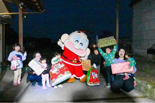 訪問先では、ぼんちくんサンタの突然の登場に驚きを隠せない様子でしたが、プレゼントを受け取ると満面の笑みがこぼれていました。