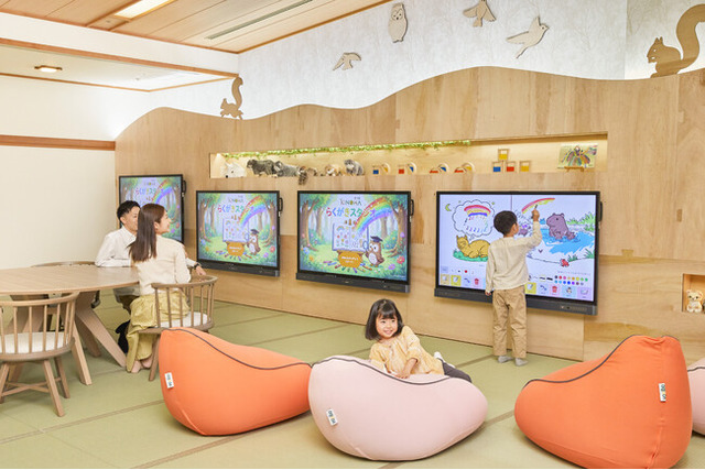 [画像4: https://prcdn.freetls.fastly.net/release_image/52177/722/52177-722-22b1256ad8957625fcf4c8674c99e44b-3900x2600.jpg?width=536&quality=85%2C75&format=jpeg&auto=webp&fit=bounds&bg-color=fff ]大きな画面を使って、色を塗ったり、線を描き足したりしながら、思い思いの表現を楽しめる大型モニター。お絵かきの題材には、マヌルネコやスナネコ、アルパカなど、ホテル近隣の「那須どうぶつ王国」で人気の動物たちが登場します。用意されている下絵は、あえて余白を残した構成で、アルパカが見ている夢を描き足したり、スナネコが見つけたものを想像して描いたりと、子どもが描き加えることで、はじめて一枚の絵が完成します。