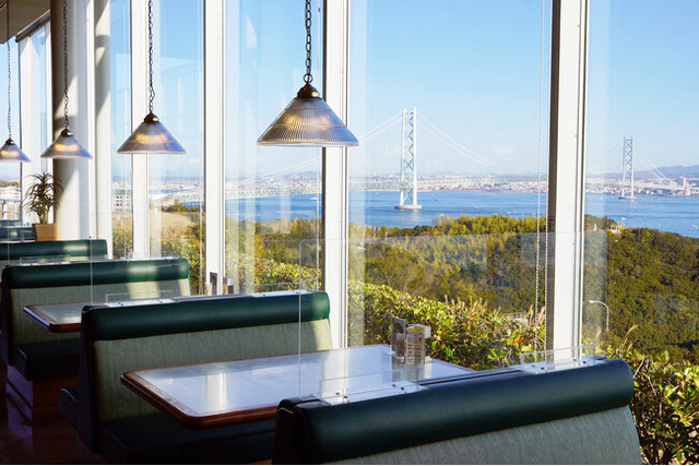 ロイヤル上り線店 窓際席より明石海峡大橋を望む