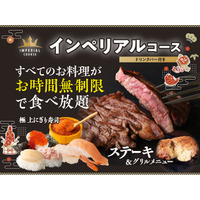 【新春の宴は 肉!!寿司!!時間無制限で贅沢三昧♪】1/28迄!充実の食べ放題「ニラックスブッフェ」にて『生帆立』などの上にぎり寿司に加え『ビーフステーキ』などのグリルも堪能できる特別コースをご提供中!