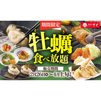 「牡蠣しゃぶ」「牡蠣の手巻き寿司」や「牡蠣フライ」などが120分食べ放題!! 【販売期間】2026年…
