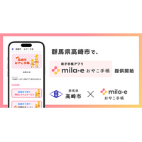ミラボ、群馬県 高崎市で 母子手帳アプリ「mila-e おやこ手帳」提供開始