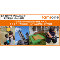 希望者募集中の山梨県内「一時託児付き旅行プラン」を、『石和温泉ホテル古柏園』にて2組のご家族様と実施しました