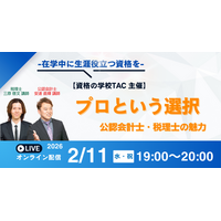 【資格の学校TAC】公認会計士×税理士コラボ!『プロという選択』オンラインセミナーは2/11(水・祝)実施!