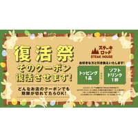 『ステーキロッヂ』でクーポン復活祭を実施!4/4(土)~4/12(日)、期限切れの全てのクーポン券でトッピング1品またはソフトドリンク1杯を無料サービス!
