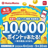 ほっともっとでのd払い決済がチャンス!d払い(店頭・モバイルオーダー)利用で、毎日1名さまに10,000ポイントが当たる!