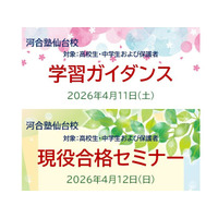 2026年河合塾仙台校 高校生・中学生対象4/11「学習ガイダンス」・4/12「現役合格セミナー」のご案内
