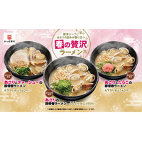 春休みは、ちょっと贅沢な一杯を。博多豚骨スープにあさりの旨みが香り立ち、オリジナルの極細麺に絡む「春の贅沢ラーメン」3種が期間限定販売!ラー油チャーシュー入り追いシャリと共に、最後の一口まで美味しく。