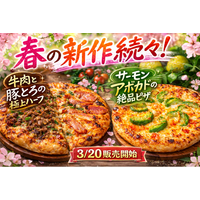 牛肉×豚とろの贅沢ハーフ&ハーフと、サーモン×アボカド×柚子の春らしい絶品ピザが登場。3月14日発売の新…