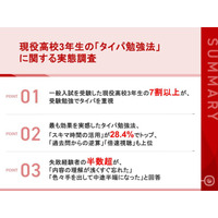 【現役高校3年生のタイパ勉強法実態調査】7割以上がタイパを重視、スキマ時間活用や倍速視聴が主流に一方で35.2%が「常に時間に追われる感覚」、失敗経験者の半数超が「理解が浅く忘れやすい」